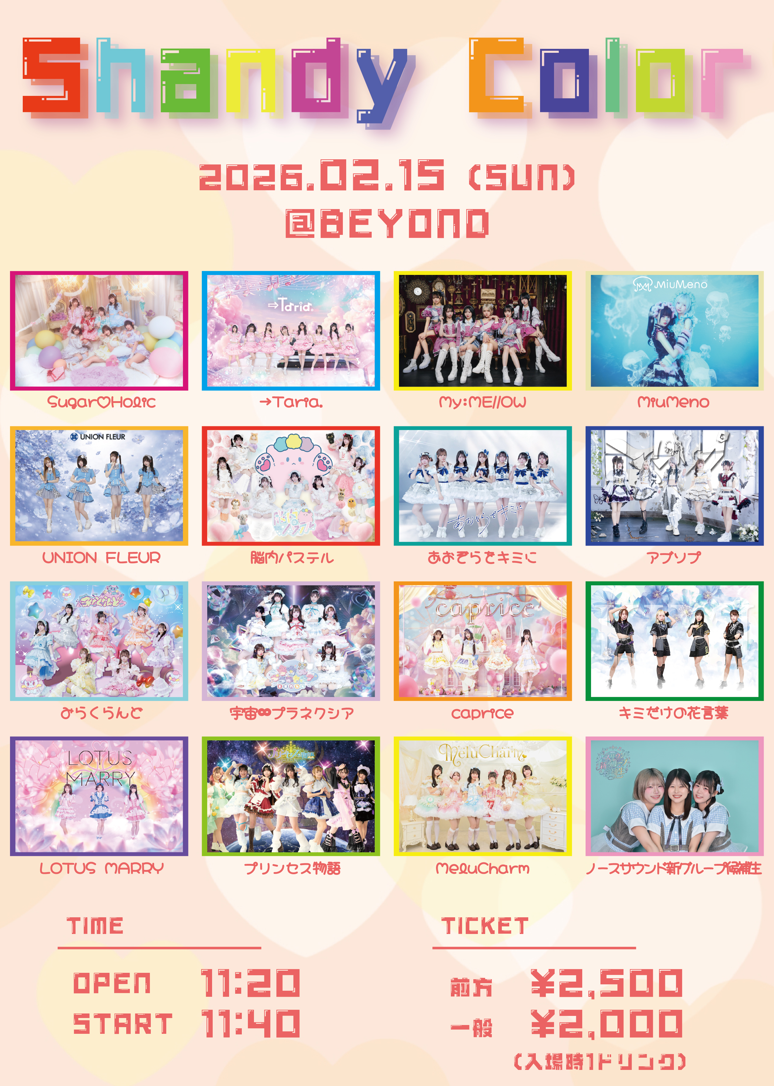 - 脳内パステル / LOTUS MARRY /キミだけの花言葉 / caprice / MeluCharm / アブソプ/Sugar♡Holic / →Taria. / My:ME//OW / MiuMeno / 宇宙∞プラネクシア / UNION FLUER / あおぞらをキミに / みらくらんど / プリンセス物語 / ノースサウンド新グループ候補生