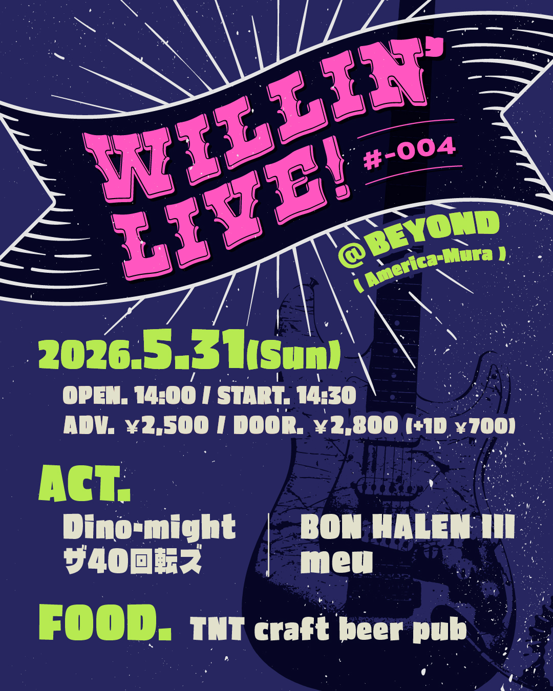- 【LIVE】 meu / ザ40回転ズ / Dino-might / BON HALEN III 【FOOD】TNT craft beer pub