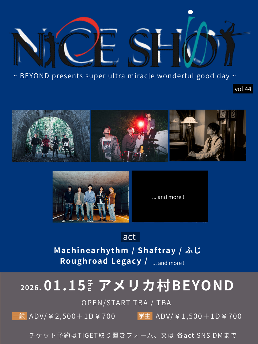 - ADV/DOOR ¥2,500/¥3,000(別途1Drink代金¥700-必要) 【学生割引】学生証持参で¥1,000割引