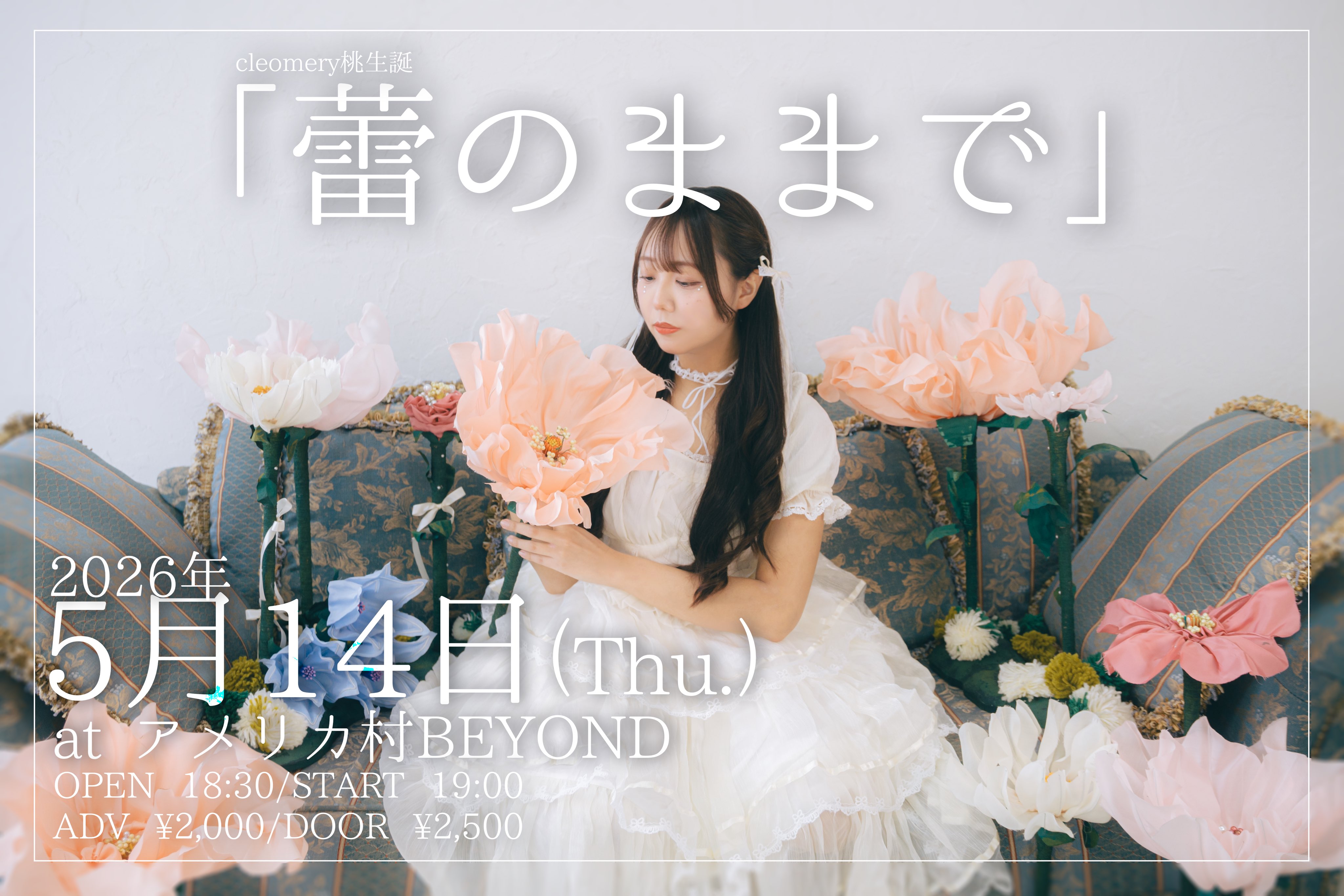 アメリカ村 BEYOND スケジュール 2026.5.14(Thu) cleomery 桃生誕『蕾のままで』 [ACT] Coming soon [OPEN/START] 18:30/19:00 [料金] ADV/DOOR ¥2,000/¥2,500(別途1Drink代金¥700-必要) 出演者/チケット情報:Coming soon ※ 生誕公演はスタンドフラワー出し、生誕委員、企画委員の発足禁止です。 フラワースタンドに関しましては後日アナウンス予定です。 (問)アメリカ村 BEYOND 06-6214-2900
