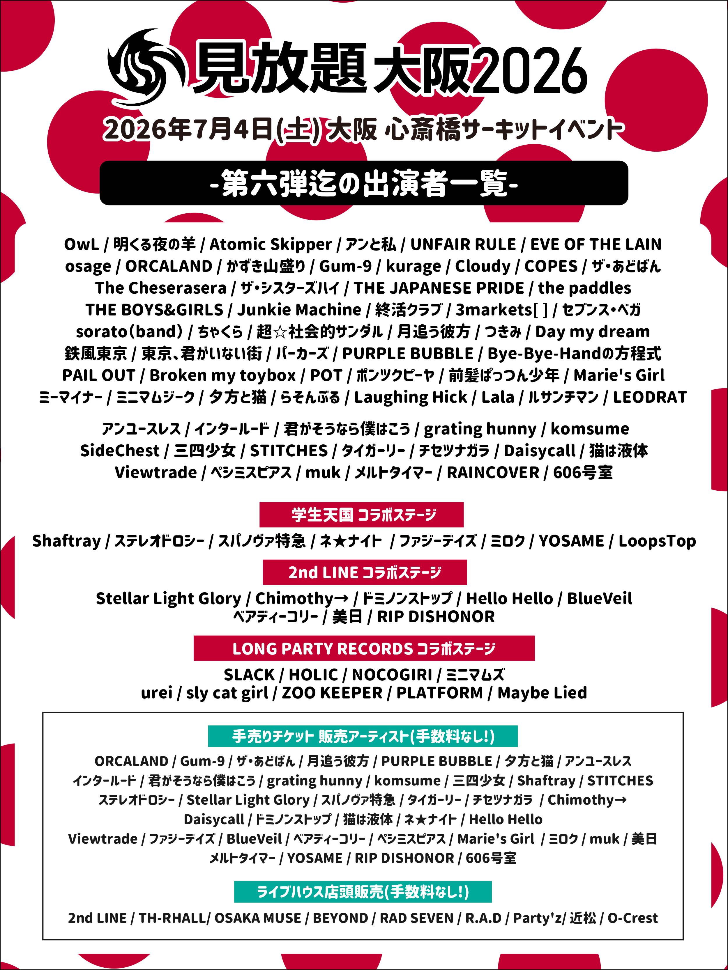 Stellar Light Glory / Chimothy→ / ドミノンストップ / Hello Hello / BlueVeil / べアディーコリー / 美⽇ / RIP DISHONOR