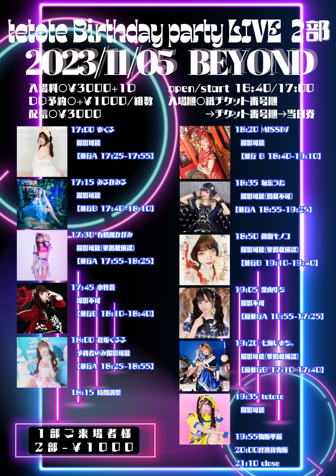 - ADV ¥3,000/ 1部入場済み¥1,000(別途1Drink代金¥600-必要)DD予約 1組 ¥1,000 配信 ¥3,000