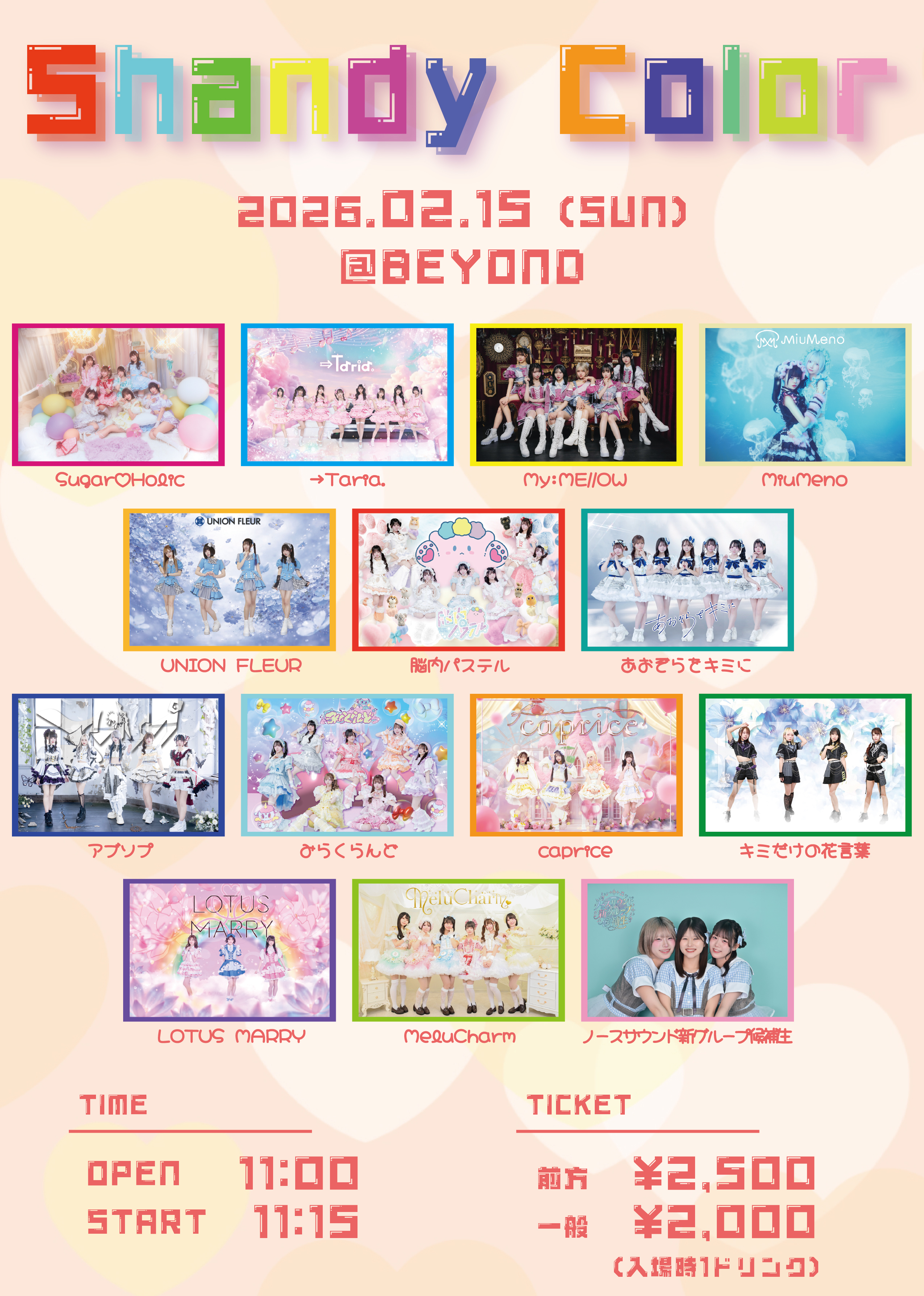 - 脳内パステル / LOTUS MARRY /キミだけの花言葉 / caprice / MeluCharm / アブソプ/Sugar♡Holic / →Taria. / My:ME//OW / MiuMeno / UNION FLUER / あおぞらをキミに / みらくらんど / ノースサウンド新グループ候補生