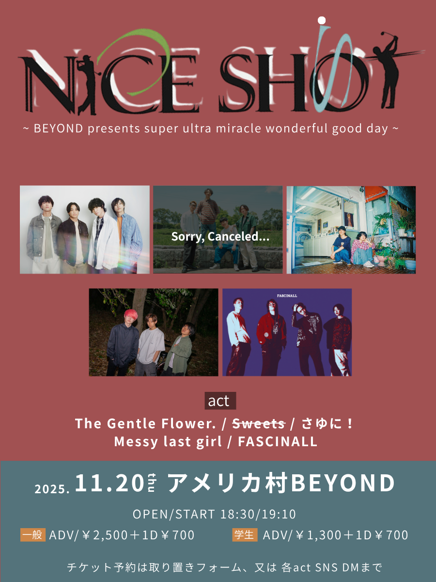 - ADV/(一般)¥2,500 (学生)¥1,300(別途1Drink代金¥700-必要)