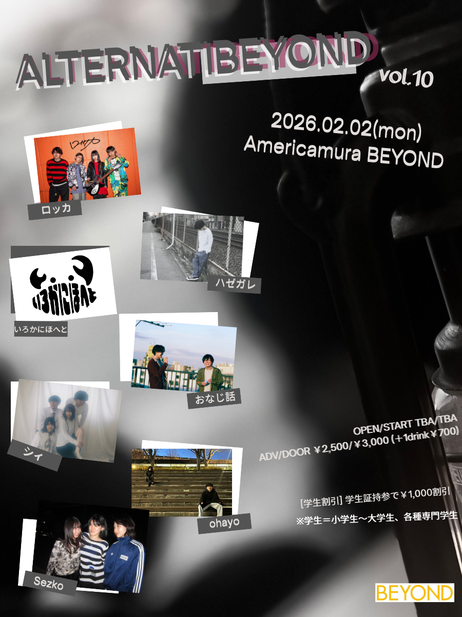 - ADV/DOOR ¥2,500/¥3,000(別途1Drink代金¥700-必要) 【学生割引】学生証持参で¥1,000割引